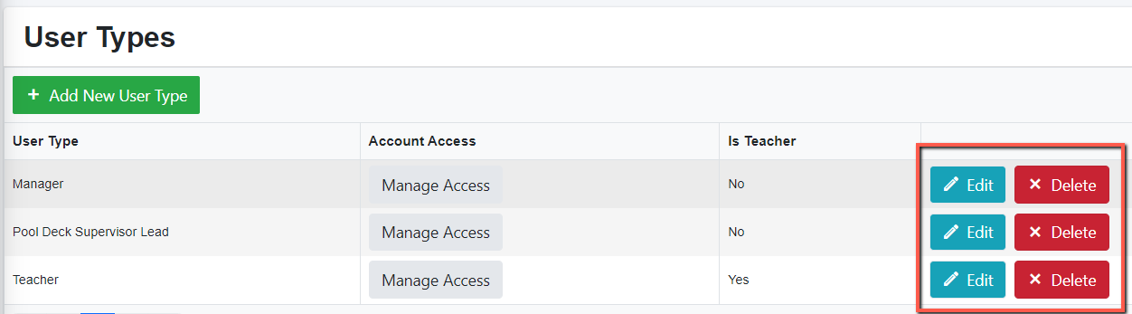 You will see a list of created user types. If you wish to edit or delete any user type, you may click the Edit or Delete button.