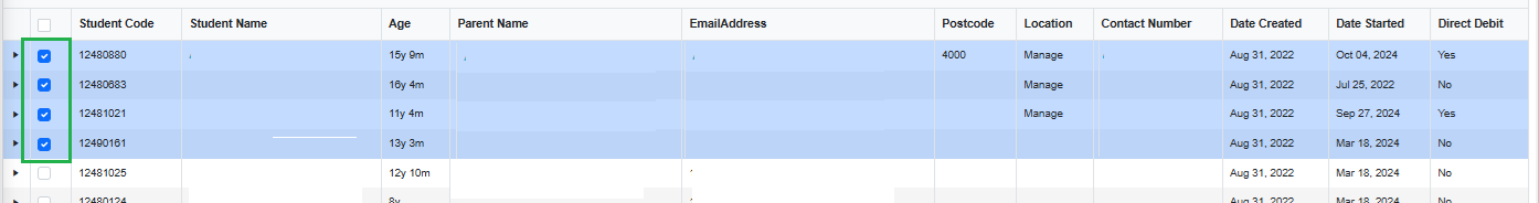 Step 3 - Tick the checkbox next to each student you want to include in the bulk email.