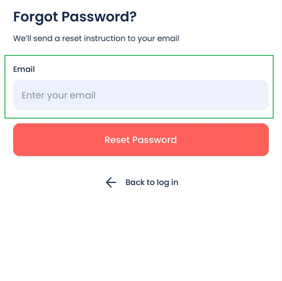 Step 4 - You will be redirected to the Forgot Password page. Enter your email address, then click “Reset Password”.