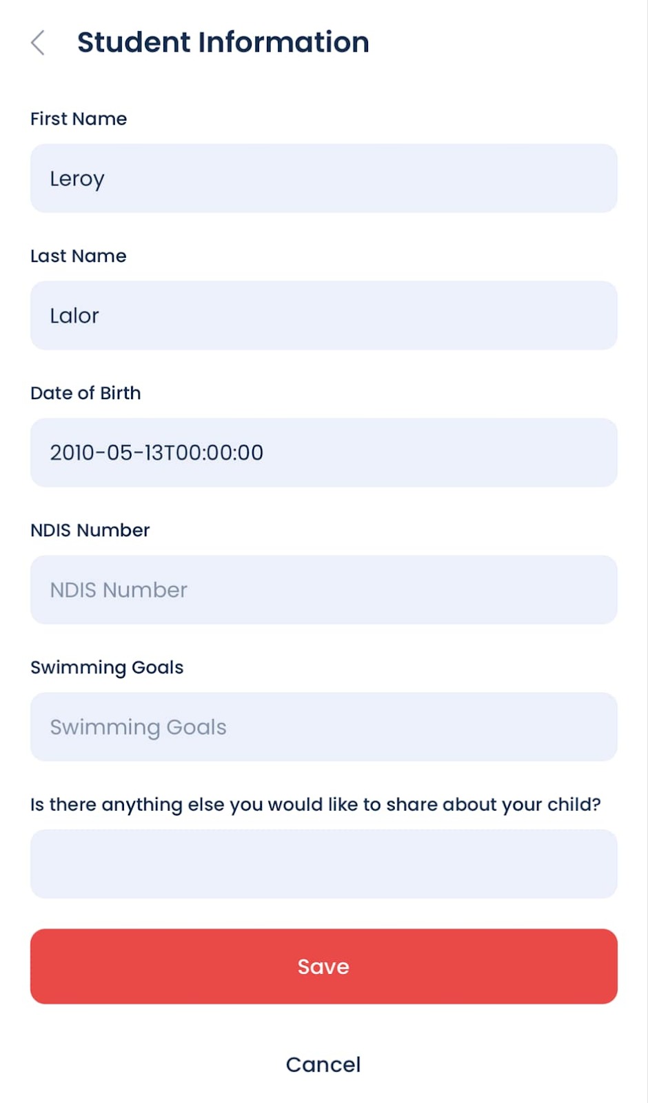 Step 1 - Click on the Student’s Name. This will open the Student Information page.
